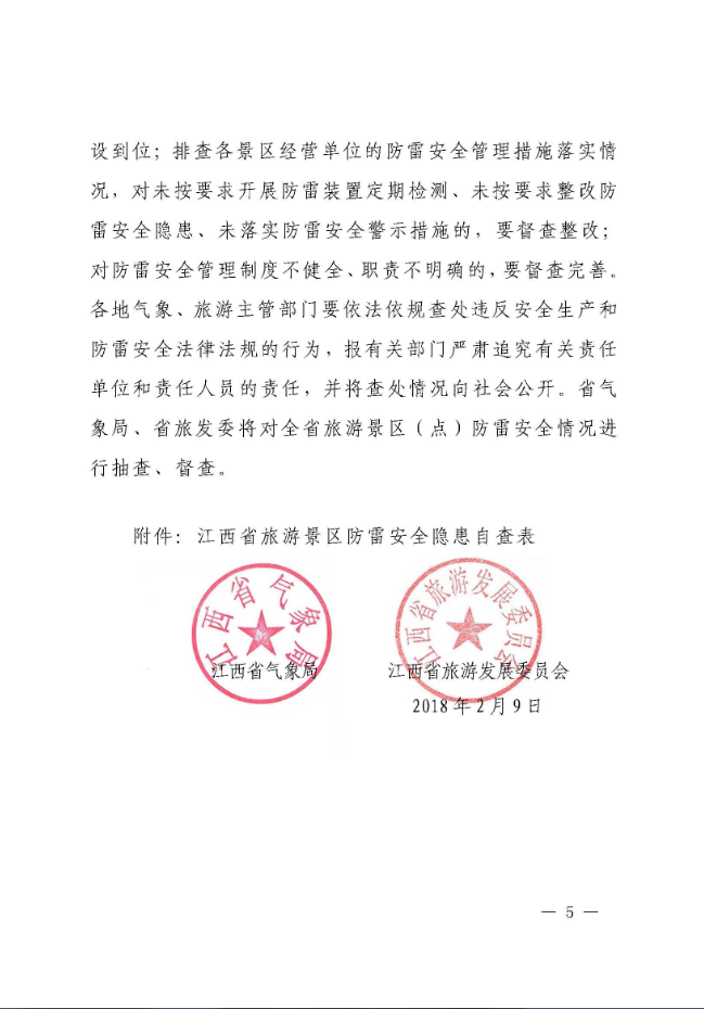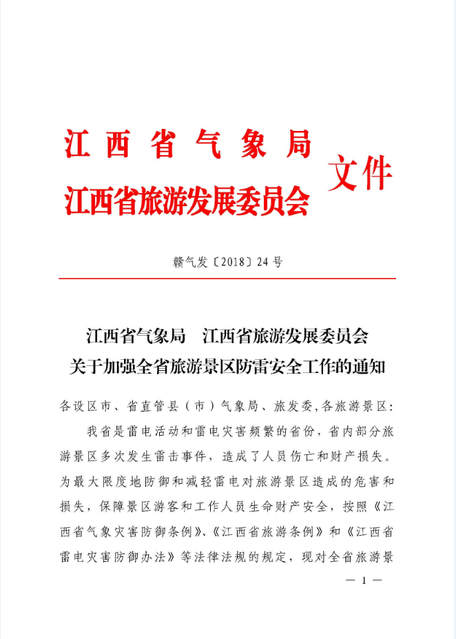 >> 江西省旅游发展委员会关于加强全省旅游景区防雷安全工作的通知